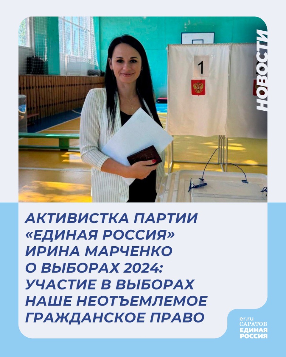 Свой выбор на избирательном участке сделала секретарь первичного отделения партии «Единая Россия» в Марковском районе Ирина Марченко, отметив важность участия в голосовании. В Марксе выбирают депутата районного собрания.