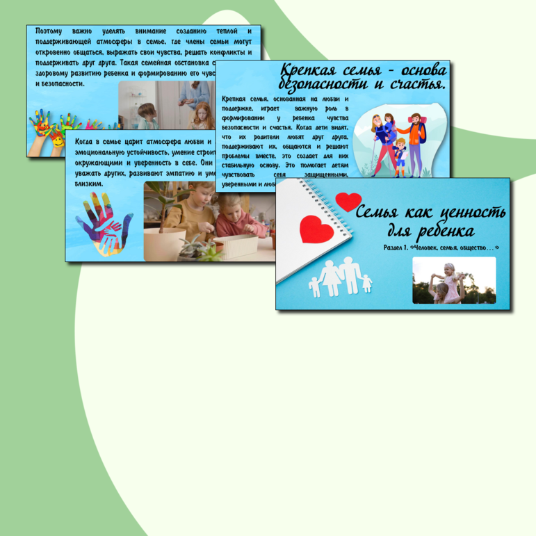 2-3 занятие курса носит название "Семья как ценность для ребенка". 35 слайдов в формате pptx и pdf. Есть редактируемый вариант. Вы сможете внести корректировки в случае необходимости. Целью урока является изучение вопросов: Крепкая семья, основанная на любви, как основа для формирования у ребенка чувства безопасности и ощущения счастья.