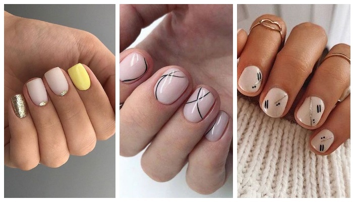 Короткие ногти - это модный тренд. Помимо красоты, короткие ногти также очень удобны в повседневной жизни. Блестки на нейтральном фоне - это красиво, приятно и стильно. На коротких ногтях блестки смотрятся уместно и привлекательно, не вызывая лишнего внимания и остаются актуальными надолго. Кофейная цветовая палитра весьма актуальна в этом сезоне. Нейл мастера предлагают украшать короткие ногти разной формы красивыми глубокими коричневыми оттенками, их можно комбинировать между собой получая в результате максимально гармоничный разноцветный маникюр. Разнообразить монохром поможет золотая фольга, которая добавит выразительности коротким ногтям. Глянцевый серый + золотые полосы — легкий в исполнении и стильный дизайн маникюра. Матовый нюд + разноцветный камуфляжный орнамент — идеальная комбинация. Перед вами маникюр, состоящий сразу из нескольких контрастных оттенков, которые объединяет необычный абстрактный принт, расположившейся на нескольких ногтях. Должно быть, вы уже обратили вниман