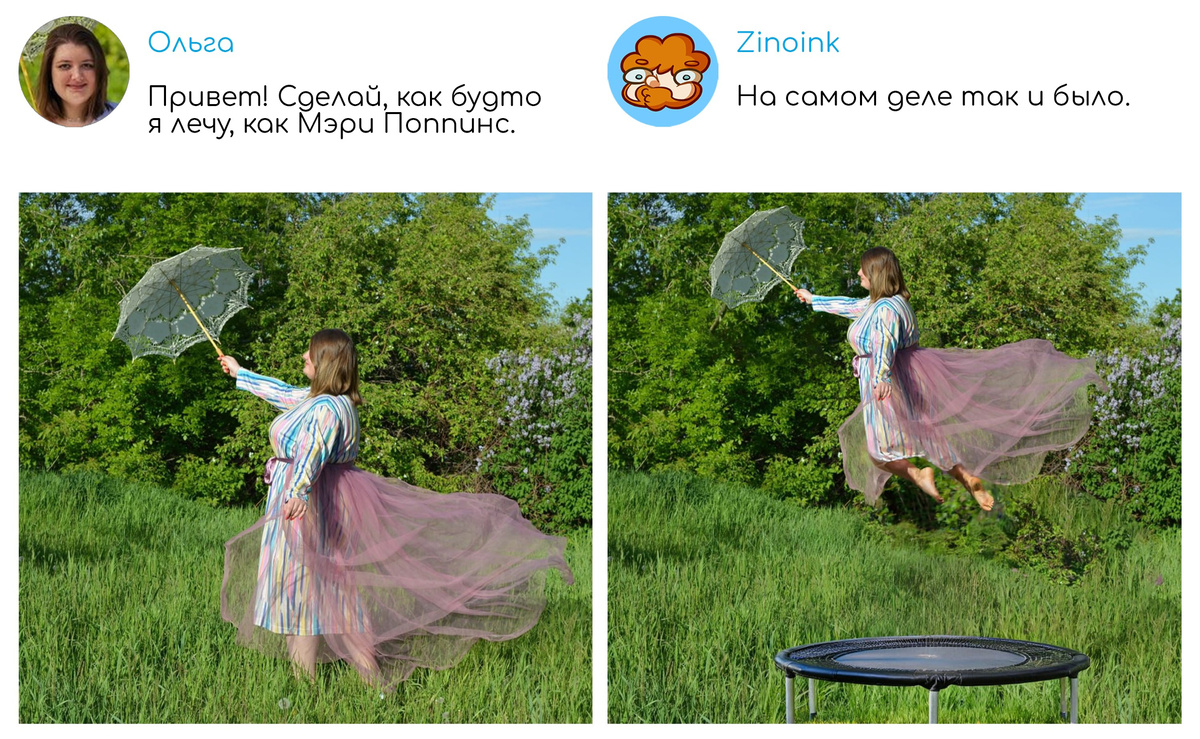 Осень – пора обновления. Мы разбираем гардероб, покупаем осенние штуки для уюта и непременно – перебираем летние фотографии! Ведь ничто не может так скрасить сентябрьские вечера, как воспоминания о жарком июле на фото. Хотя...знаю, что может повеселить больше! Если эти самые фото побывают в моей рубрике фотошопы. Новый выпуск представляю вашему вниманию уже сейчас! Напоминаю, что ты можешь стать героем рубрики! Просто присылай фотку с пожеланием, что бы хотел на ней исправить. А я все сделаю! С радостью и низменным юмором! А пока давай полюбуемся героями этого выпуска. Героиня первого фото хотела почувствовать себя Мэри Поппинс. Не знаю, зачем ей для этого фотошоп. Ведь скоро будут такие ветроганы с ливнями, что полетать с зонтом можно будет и так. Но если нет времени ждать – выполнил просьбу. Сразу видно, что герои следующей фото – любители классики! Ведь так можно опухать только после традиционной пшенички. Но раз хочется добавить отдыху интеллигентности – будет сделано. Сентябрь –