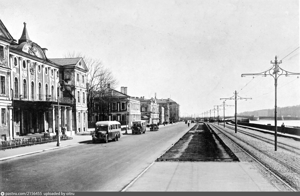 Так выглядела в конце тридцатых годов Университетская набережная - проезжая часть была меньше современной, зато были трамвайные пути. Ленинградские пожарные около части на Мичуринской улице, которая располагается там и по сей день. Дом на углу проспекта Красных Командиров (ныне Измайловский проспект) и 8-й Красноармейской улицы. Заодно можно разглядеть два главных представителя общественного транспорта Ленингр