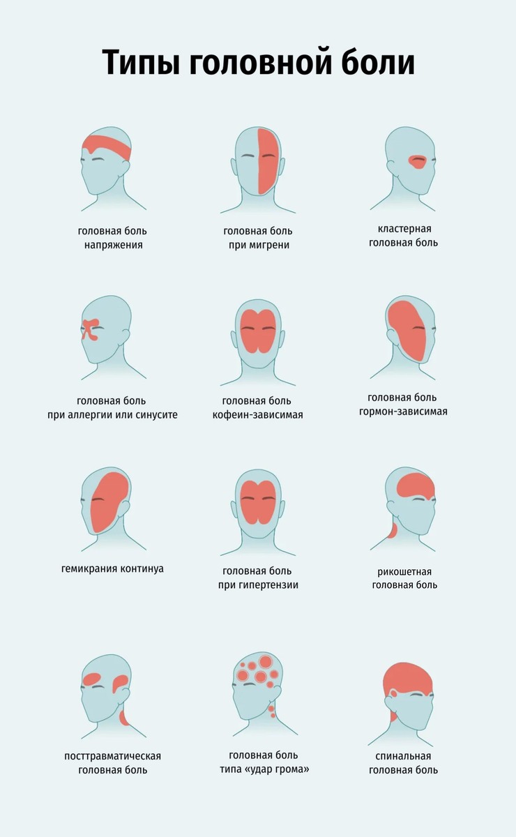 Головная боль – это один из самых распространенных симптомов, который испытывает практически каждый человек. Она может быть острой, тупой, пульсирующей, давящей, локализованной в определенной области головы или распространяться по всей ее поверхности. Причины головной боли разнообразны: от обычной усталости и стресса до серьезных заболеваний. Причины головной боли • Первичная головная боль: включает в себя мигрень, головную боль напряжения и кластерные головные боли. • Вторичная головная боль: возникает как симптом другого заболевания, например: * инфекции (менингит, энцефалит) * травмы головы * повышение артериального давления * опухоли головного мозга * инсульт * проблемы с синусами * глазные заболевания * проблемы с зубами * нарушение сна * обезвоживание * употребление алкоголя и кофеина. Симптомы головной боли • Мигрень: сильная пульсирующая головная боль, обычно с одной стороны головы, которая может сопровождаться тошнотой, рвотой, светобоязнью и чувствительность