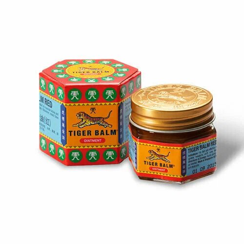 Красный Тигровый бальзам - это эффективное болеутоляющее средство, которое применяют для снятия боли в суставах и мышцах, а также при простудных заболеваниях. Бальзам является быстродействующим он быстро успокаивает при физическом дискомфорте, растяжках и болях. Изготовлен под строгим контролем качества, используя лучшие ингредиенты. ПРИМЕНЕНИЕ: СПОСОБ ПРИМЕНЕНИЕ: Нанесите небольшое количество бальзама на проблемные участки тела и массируйте круговыми движениями до полного впитывания. Бальзам можно использовать до трех раз в день. СОСТАВ: