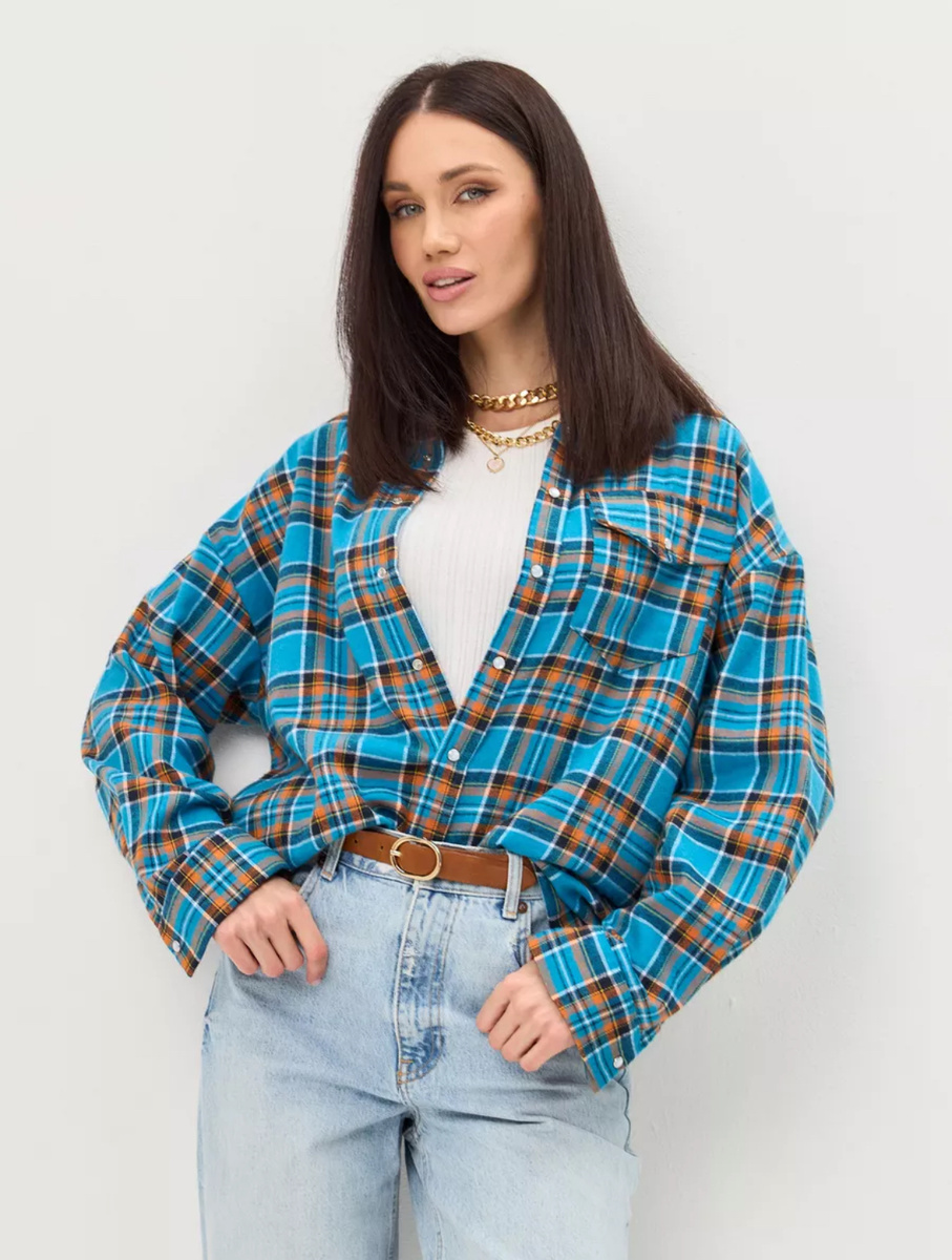 Клетчатые рубашки женские сейчас на пике популярности. Модель в клетку со спущенным плечом, умеренный oversize. Легкая фланелевая ткань обеспечивает дополнительное тепло, а синяя клетка придает ей модный актуальный вид, подойдет девушкам - подросткам и взрослым женщинам высокого и невысокого роста и с любым типом фигуры - полным и худым.