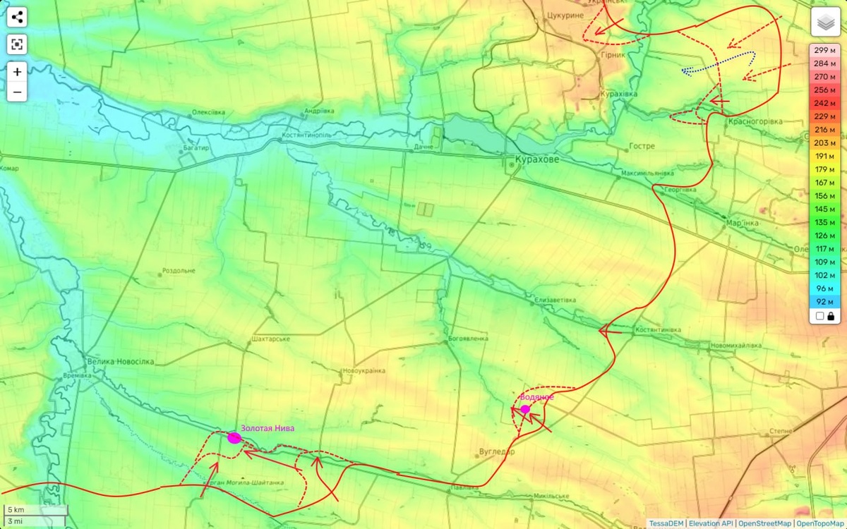 Вчера наши части сумели полностью освободить н.п. Водяное и продолжают обход Угледара с северо-востока.