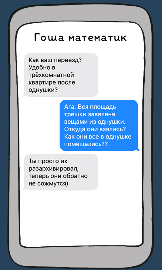 Иметь нестандартный подход к жизни - привилегия лишь для некоторых людей. Большинство из нас пользуется проверенными веками шаблонами, многие из которых давно устарели. И лишь некоторые позволяют себе импровизировать. Вашему вниманию 8 юмористических переписок, в которых люди проявляют весёлый и нестандартный подход к жизни. Приятного просмотра, любимый читатель! Переезд - суровое испытание для всей семьи. Вещи и предметы, которые оказывается у вас были, материализуются буквально из воздуха. И ведь не выкинешь ничего, оно же когда-нибудь обязательно пригодится! Девушки, как вас понять? Вопрос, который будет задаваться вечно. И что, получается, если тебе кажется, что она совсем "ку-ку" - это такой флирт? Пишите в комментариях о своём опыте и улыбнитесь, прочитав следующую переписку: Когда-нибудь это случится: какой-нибудь гений компьютерных игр придумает игру, которую будут хотеть все женщины. И тогда какой-нибудь "плейстейшн" появится абсолютно в каждом доме. Правда, это игра наверняка