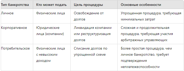 Виды банкротства и их особенности