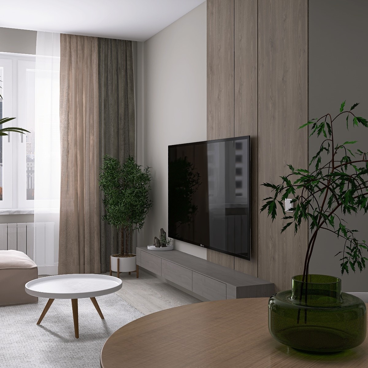 Всем привет! Представляю вашему вниманию проект двухкомнатной квартиры в городе Новосибирск. Квартира предназначена для постоянного проживания двух человек: Яны и её 13-летней дочери Марины. Основным пожеланием владельцев было сделать спокойное пространство в современном стиле но с капелькой природных мотивов и оттенков. В начале работы мы определились с количеством комнат, их наполнением и цветовой гаммой. Затем я приступила к разработке планировочных решений. В просторной квартире 62 квадратных метра было важно учесть желание оставить оба сан.узла, в одном сделать душ а в другом поставить ванную, организовать место для совместного отдыха и вынести отдельную постирочную зону. Было принято решение убрать гардеробную от застройщика и перенести туда кухонный гарнитур чтобы сделать просторную кухню-гостиную. И вот я предложила хозяевам три варианта расстановки мебели: После небольших исправлений изучив все нюансы хозяева остановились на первом варианте планировочного решения, на нем и с