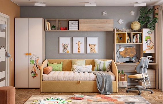 - Оптимизация пространства. В детской спальне важно эффективно использовать пространство. Рассмотрите варианты многофункциональной мебели, такие как кровати с ящиками для хранения игрушек или письменные столы с полками. Это поможет поддерживать порядок и организованность в комнате.