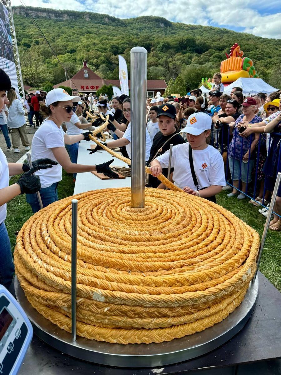 Сыр-косичка весом 196 килограммов. Рекордная сыр-косичка на фестивале сыра в Адыгее