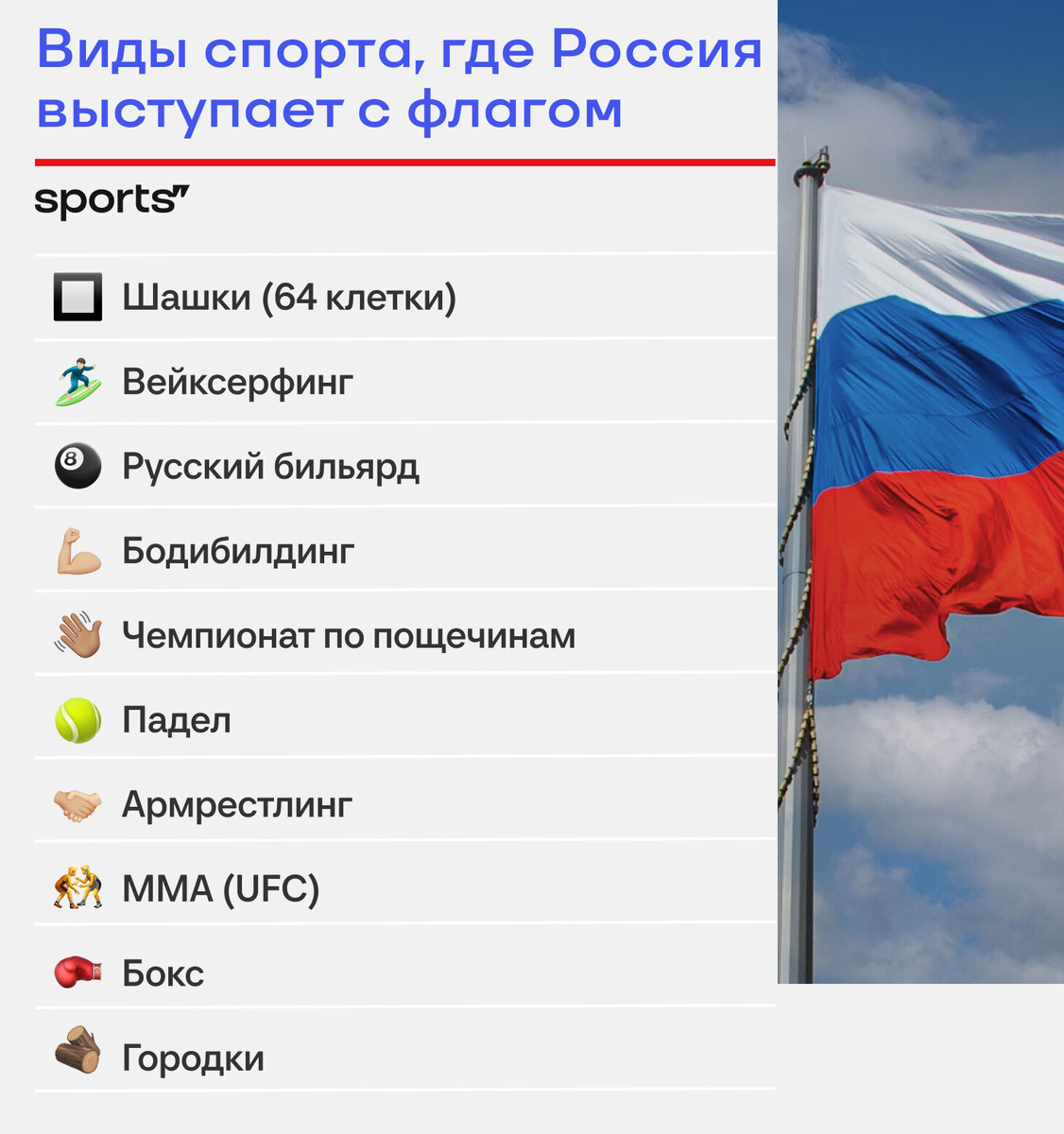 Но остаются виды, где все по-старому – с флагом и гимном. А некоторые федерации даже оттаивают со временем – накануне в шашках разрешили нашу символику (пусть и с сопротивлением извне).