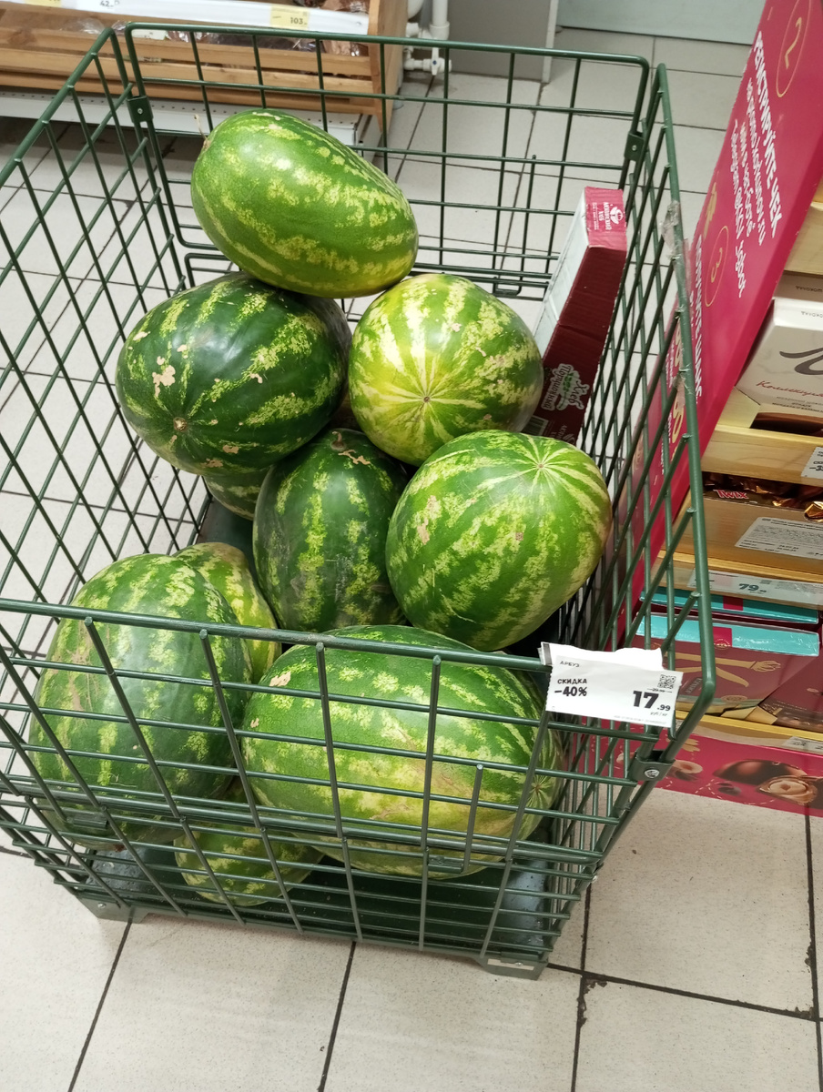 Ну что, опять смотрим, что сколько стоит) Это Новороссийск,город у моря в краснодарском крае. Казалось бы, должны быть дешёвые овощи и фрукты. Сейчас проверим! Для начала зайдём в сетевой продуктовый. Арбузы по 17,90! На рынке цены от 25 за обычные сорта. Персики по 160. Инжир по 480 за кг! ( На рынке местный по 250, по 150 - мятый). Теперь зайдём в овощной магазин. Цены примерно такие же, как на рынке. Цены за 1 кг! Персики 180 Малина 750 и 1000 Ежевика 300 Крымская клубника 🍓 350 и 500 Кизил 220 Голубика 400 Виноград мятый по 100- 150, более твердый по 250-280 Манго - 220 Сливы по 70 Жёлтые - 120 Кукуруза 🌽 - 45 за штуку Вот более элитный виноград,от 200 за кг Петрушка 30, укроп 40 за пучок Красивые перцы по 140 Белые баклажаны по 120 Огурцы эстафета 230 Помидоры от 100 руб, Много вариантов по 170- 200 Кабачки 55 Баклажаны 50 Есть более красивые по 80 и 100 Огурцы 120 В этом году нет прям дешёвых овощей и фруктов. Некоторые цены почти как в Москве! Цены на