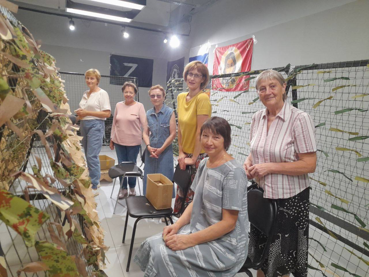 Добровольцы Первого волонтерского центра из Владимира продолжают работу по изготовлению маскировочных сетей для отправки в зону проведения специальной военной операции.