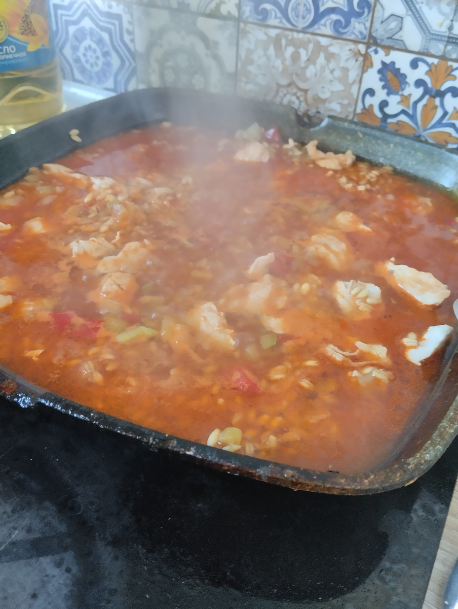 Привет, друзья! Мой ленивый отпуск продолжается. На обед сегодня, в понедельник 9 сентября, я решила приготовить перловку с индейкой, что-то похожее на плов получилось. Индейку обжарила с репчатым луком, красным и жёлтым болгарским перцем, добавила томатную пасту , соль, все потушила вместе. Отдельно отварила перловку. Варила её аж в 3х водах, столько она дала мути. Отварила до полуготовности, потом добавила к индейке и тушила все вместе минут 15. Заодно порезала оставшийся перец и убрала в морозилку. Заодно к перцу добавила молодой укроп и базилик. Зимой прекрасно будет что-то приготовить со свежим перчиком. Пообедали на улице. После обеда я замочила огурцы для засолки, перед отпуском мне принесли пакет благодарные пациенты на работу. Не спеша посолила. Рецепт в конце будет. Под вечер собрала стручковую фасоль в своём смешном огороде. С двух кустов довольно много получилось, учитывая то, что мы её ещё и ели и замораживали. Завтра порежу и уберу в морозилку. Очень мне нр
