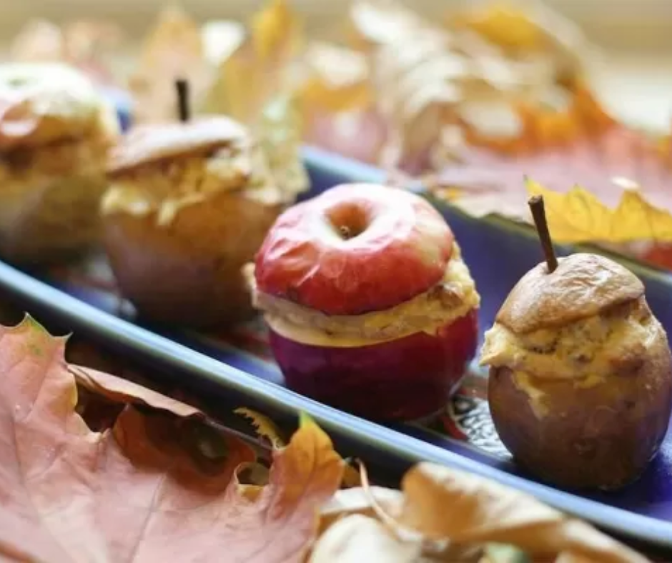 Заполняем яблоки начинкой, сверху кладём кусочек сливочного масла и выкладываем на противень.