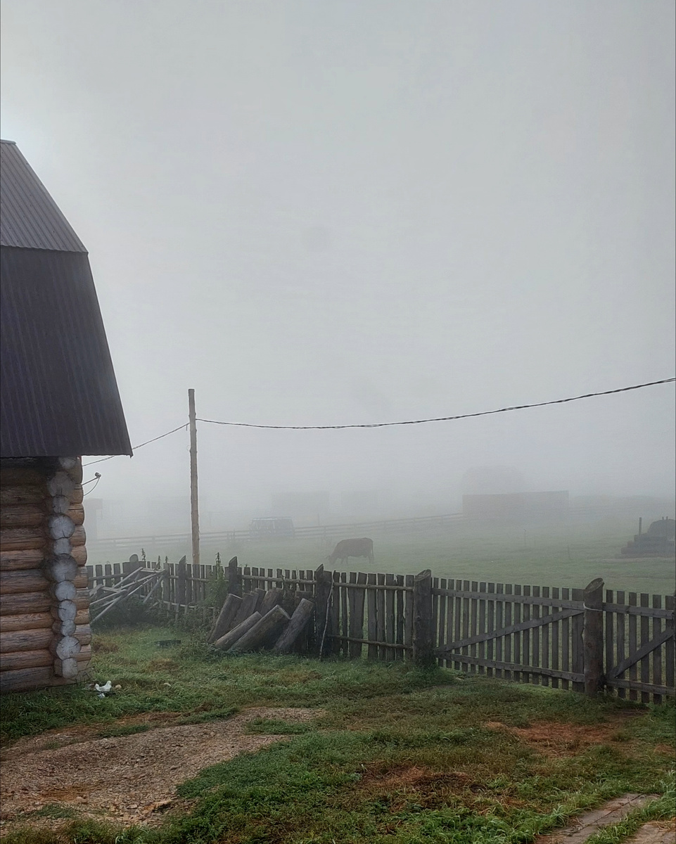 Утром 2 сентября за окном был густой туман. Но через пару часов уже светило яркое солнце. В окне прекрасный вид на поля и горы Башкирии, свободно пасутся лошади и коровы. А мы отправились проходить ещё один отрезок: поселок Верхнеаршинский – гора Баштур – деревня Николаевка (27 км). Нас довезли до Верхнеаршинского, а оттуда мы должны были вернуться к домику в Николаевке. Дорога шла по старой заросшей узкоколейке. По пути стога сена, возле которых сидела хищная птица, которая совсем нас не боялась. Наш путь идёт по относительно хорошей дороге. Умели же раньше строить 😅 к заброшенной станции "Рудник". По дороге приходится перейти вброд речку Арша. Обувь снимаем, идём босиком. Но сухими мы пробыли не долго 😆 На дорогах лужи, обойти которые просто невозможно. Здесь мы впервые увидели следы медведей. Причем, сразу двух: малыша и медведицы. Свистеть стали чаще 😅, встречаться с ними ближе не хочется. Так постепенно дошли до поселения "Рудник". Сейчас это один полуразрушенный дом. А в