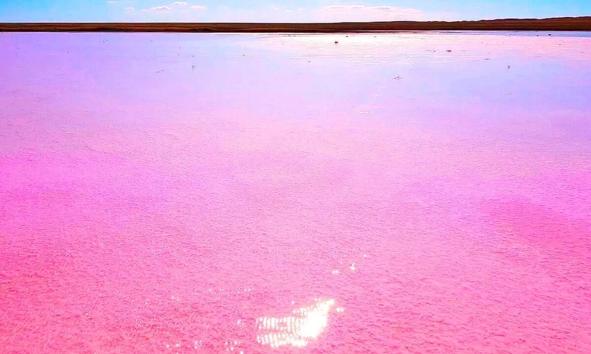 В чём же уникальность этого озера? Каждые несколько лет вода в озере становится - розовой. Чудо? Нет, не чудо.