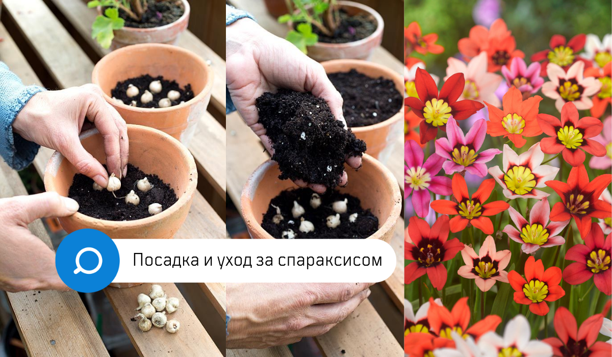 КОГДА САЖАТЬ Спараксис высаживают весной, когда минует угроза заморозков, обычно это середина апреля – начало мая. КАК САЖАТЬ ЦВЕТЕНИЕ спараксиса обычно начинается спустя 8 недель после посадки и длится порядка 3х недель. УХОД 1. Полив: требует умеренного полива. В период активного роста и цветения почву нужно поддерживать во влажном состоянии, но без избытка влаги. Полив уменьшают после того, как растение отцветет. 2. Подкормка: для обильного цветения рекомендуется подкормка комплексным минеральным удобрением раз в две недели, начиная с появления первых побегов и до завершения цветения. 3. Зимовка: луковицы спараксиса на зиму необходимо выкопать (уже при -5°C может замерзнуть), просушить и хранить в прохладном, сухом месте до весны. Лишнюю листву обрезают примерно на 3-5 см. Этот простой, но эффективный уход обеспечит вашему спараксису яркое и обильное цветение, создавая в саду незабываемые цветовые акценты. #спараксис #луковичныецветы #цветочки #цветочныйнабор