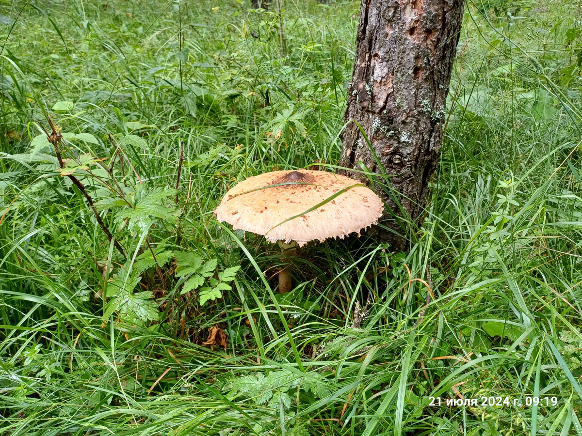 Серия статей про пребывание в горном лагере "Эдельвейс" (долина р. Аксаут, КЧР, в 1 км к югу от пос. Красный Карачай). 19.07.2024 - 27.07.2024 В данной статье о выходном дне, 21.07 - между походами. Да и вообще про другие дни и времяпровождение. Хочу отметить, что леса в окрестностях лагеря были забиты грибами. Маслята, белые, сыроежки, зонтики и ещё всякие разные съедобные. Желающие их собирали самостоятельно и потом либо относили на общую кухню (если там кончался запас грибов) или готовили самостоятельно (варили, сушили, жарили -- в общем, как хотели, так и ели). В лагере было несколько сведущих людей в грибах, они подсказывали, что из найденного годится в пищу. Я сам вообще не грибник, но делать было решительно нечего и утром после завтрака решил немного побродить вокруг лагеря и хотя бы посмотреть на грибы: За лагерной банькой есть спуск к воде с небольшой заводью, где можно окунуться в речку (зайти примерно по колено в воду, сесть на зад и окунуться; можно пройти и подальше, но