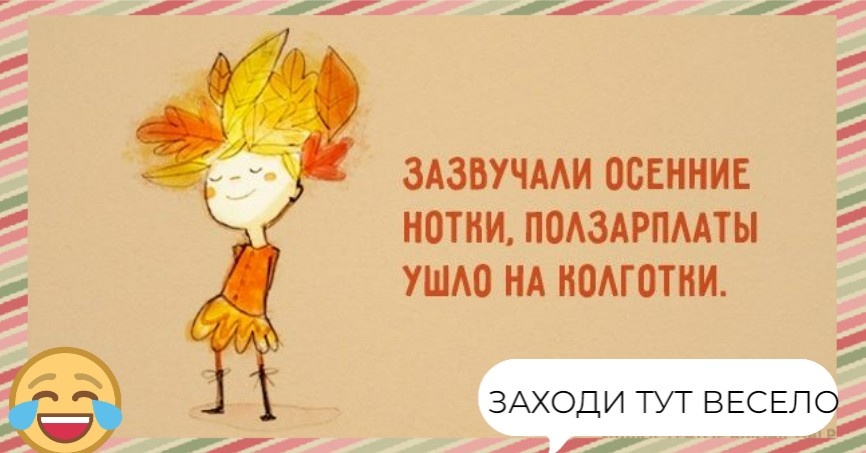 - 1. Осень - это когда ты заходишь в магазин за тёплыми вещами, а на кассе тебе говорят: "С вас 15 тысяч". И ты такой: "Ну, ладно, давайте две".
