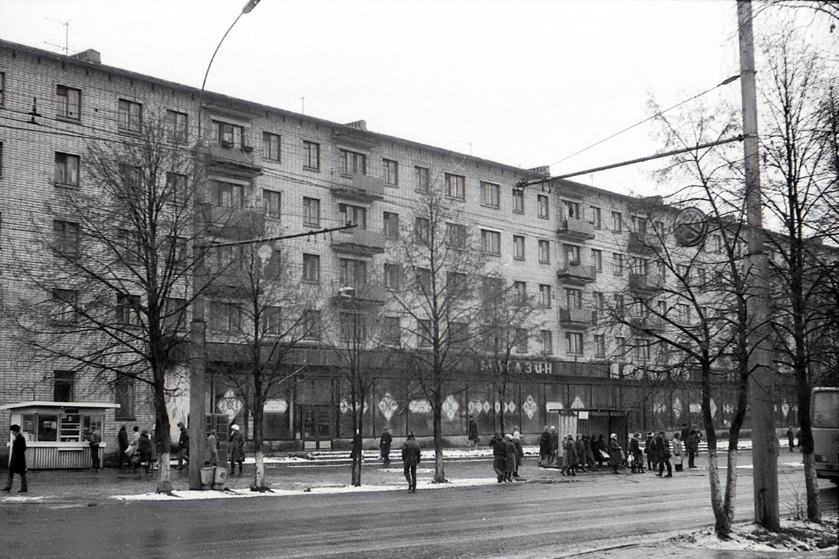 На снимке конца 1980-х годов улица Герцена и магазин "1000 мелочей", который открылся в субботу 12 февраля 1977 года. Вот что писали тогда про новый магазин: "В торговом зале, площадь которого 860 квадратных метров, светло и уютно. Каждый может подойти к стеллажам: здесь внедрён метод самообслуживания. Покупатели могут приобрести металлическую и фарфоро-фаянсовую посуду, железно-скобяные изделия, изделия из пластмассы и многое другое. В первый день работы магазин посетили тысячи вологжан, а сотни ушли с покупками". На снимке есть интересные детали того времени. Характерный газетный ларёк, рядом с которым стоит, если внимательно присмотреться, мужчина в шапке петушке. Справа от ларька рядом с витриной магазина расположились две телефонные будки. Две копейки за связь, но ловкачи умудрялись звонить и бесплатно. На месте автобусной остановки сейчас парковка, а сама она переехала влево к перекрёстку с Галкинской. А в правой части снимка можно видеть ещё один штрих той эпохи - "зад" Икарус