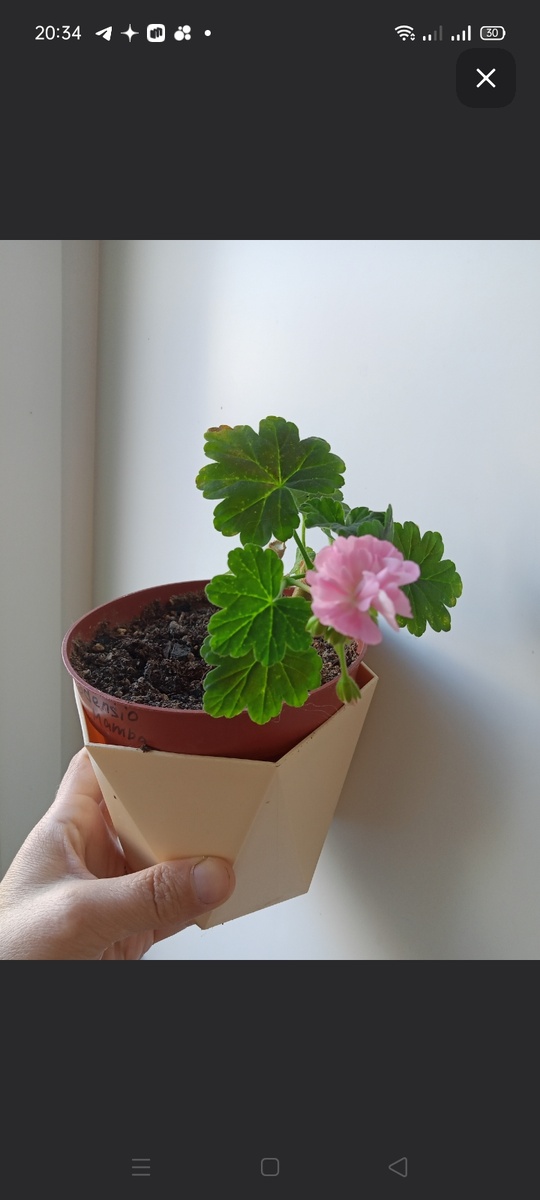 Весной купила черенок пеларгонии Оденсио Блэк мамба – уж очень фото понравилось. Ну, вы же знаете, как завлекательно профессиональные продавцы умеют фотографировать, особенно цветущие растения – распустившиеся бутоны только что не выскакивают на зрителя. В общем, и Мамба (змея то бишь) мне понравилась, и то, что она Блэк, и серия Оденсио уже успела заслужить мое почитание, правда, тогда ещё только в теории😁 Так выглядела пеларгония, прожив у меня примерно полтора месяца. Бледненькие листочки и цветы меньше, чем у маргариток, плюс завязались они не шапочкой, а всего трехштучным соцветием. Фото сразу после покупки я не делала, о чем, конечно, впоследствии пожалелось – было бы с чем сравнить. Но все же, наверно, видели такие черенки – торчащая из субстрата палочка с несколькими листочками. Зелёными, при чем тут Блэк – было непонятно. Продавец, впрочем, объяснила, что окрас у пеларгоши пока зимний и все недостающие краски она обязательно доберет. Пока черенок содержался в комнатных услови