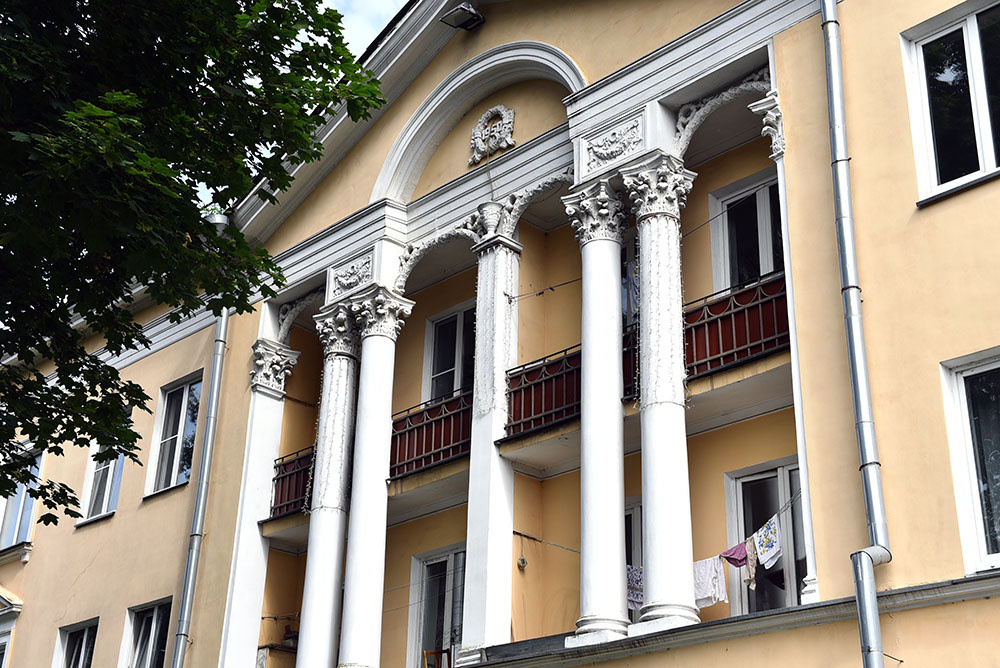 Историю нашего Гомеля можно проследить и по датам на фасадах некоторых заданий. На улице Советской в районе остановки «Чонгарская дивизия» есть дом с пышным архитектурным декором, лепниной выложен и год постройки — 1950. Это бывший дом Гомельского пивзавода, ранее — пивного завода «Красная Бавария», вывезенного из Германии по послевоенным репарациям. Кстати, вскоре после постройки это здание архитектора А.Косякова попало на страницы гомельской прессы как объект критики в разгар кампании по борьбе с «архитектурными излишествами».