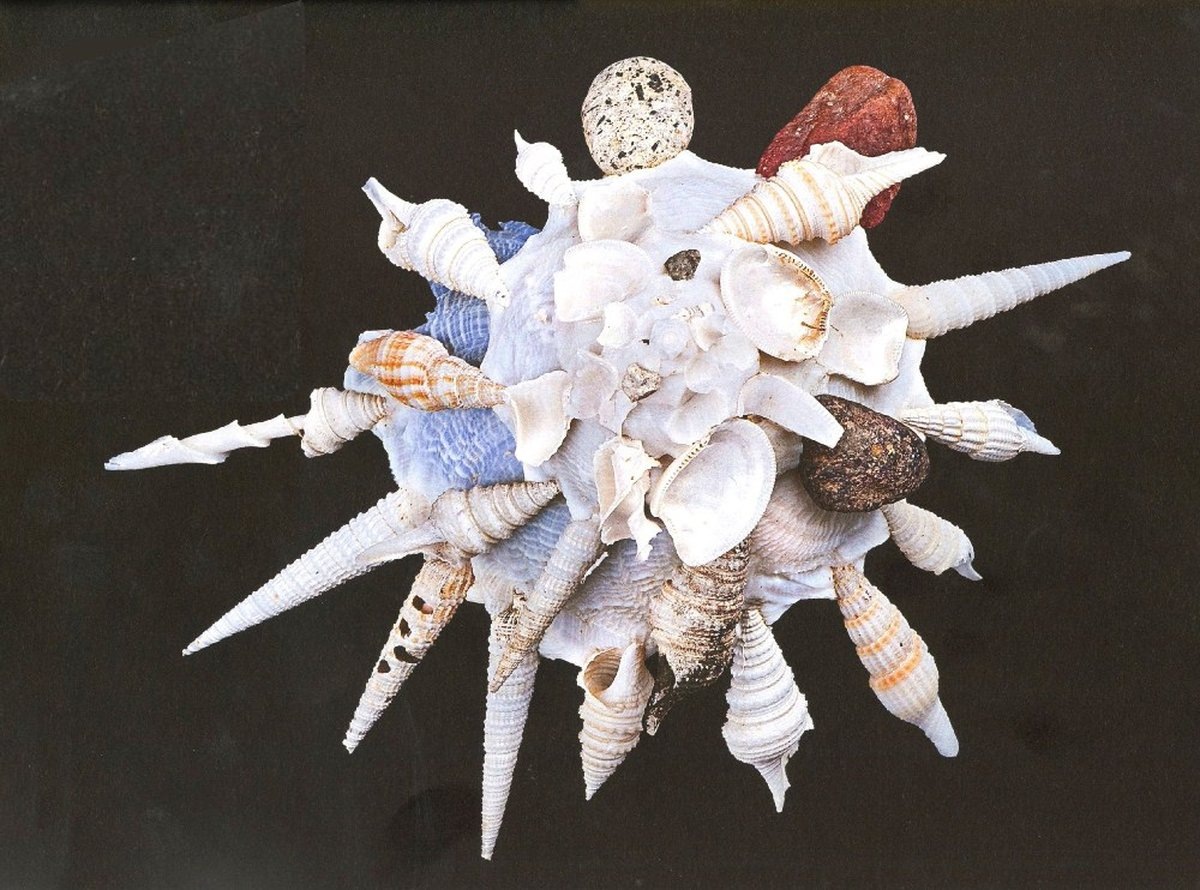 P.S. Да, уже посчитано, что та самая Xenophora pallidula использует на своих раковинах фрагменты и целые раковины 13 видов двустворчатых моллюсков и более 30 видов брюхоногих моллюсков. При этом двустворчатые моллюски крепятся внутренне стороной вверх, а брюхоногие - вверх устьем (у других видов бывает и не столь упорядоченно).