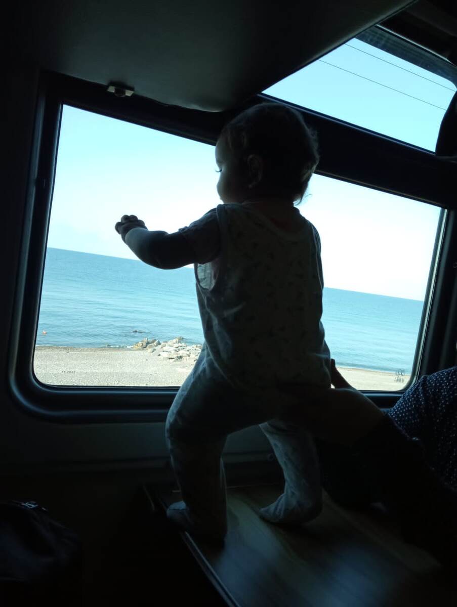 Я надеялась, что в поезде ребенка укачает, ближе к 9 вечера я ее уложу и выдохну, но не тут-то было... Дина хотела везде лезть, со всеми знакомится, а на длинных стоянках - гулять по перрону. В районе 11 далеко не с первой попытки мы кое-как улеглись, а в 6 утра в Туапсе вышли наши соседи, и жить стало гораздо проще) Последние пару часов проехали с комфортом, даже хлебнули дорожной романтики.