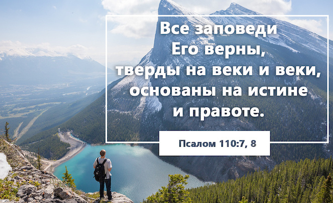 «Дела рук Его — истина и суд; все заповеди Его верны, тверды на веки и веки, основаны на истине и правоте. Избавление послал Он народу Своему; заповедал навеки завет Свой. Свято и страшно имя Его! Начало мудрости — страх Господень; разум верный у всех, исполняющих заповеди Его. Хвала Ему пребудет вовек» (ст. 7-10).