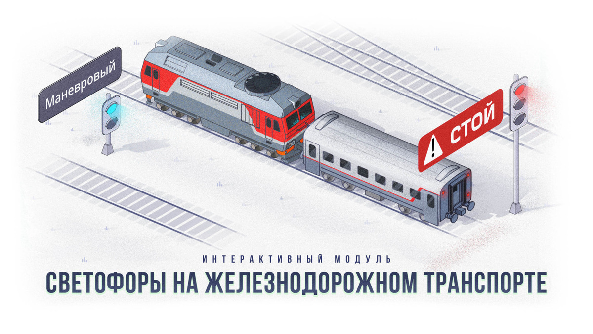 Интерактивный модуль «Светофоры на железнодорожном транспорте» предназначен для обучения работников железнодорожного транспорта содержанию Приложения №1 к Правилам технической эксплуатации железных дорог Российской Федерации (утв. 23 июня 2022 г. Приказом Министерства транспорта №250) Инструкции по сигнализации на железнодорожном транспорте Российской Федерации.