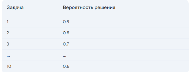 Как рассчитать вероятность успешного решения теста, если известна сложность каждой задачи?