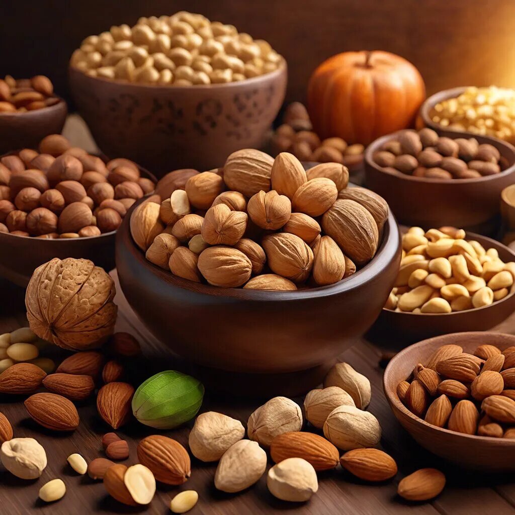 1. **Разнообразие видов**: Существует много видов орехов, включая грецкие, миндаль, фундук, кешью, фисташки и арахис. Каждый из них имеет свои уникальные вкусовые качества и питательные свойства.