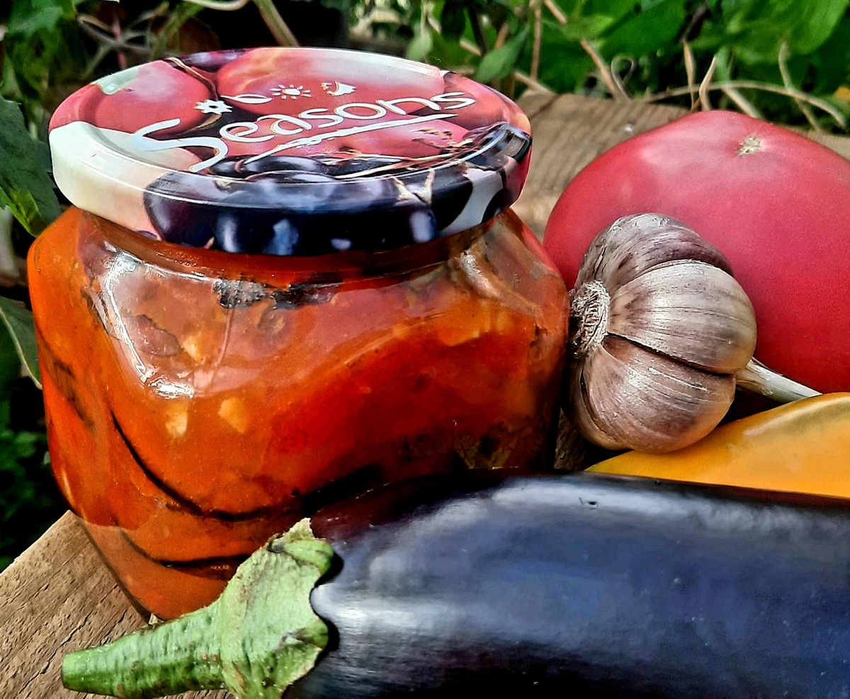 Из минусов: перец и баклажаны надо о-отдельности обжаривать. И этот вариант требует в конце пастеризации банок с содержимым.