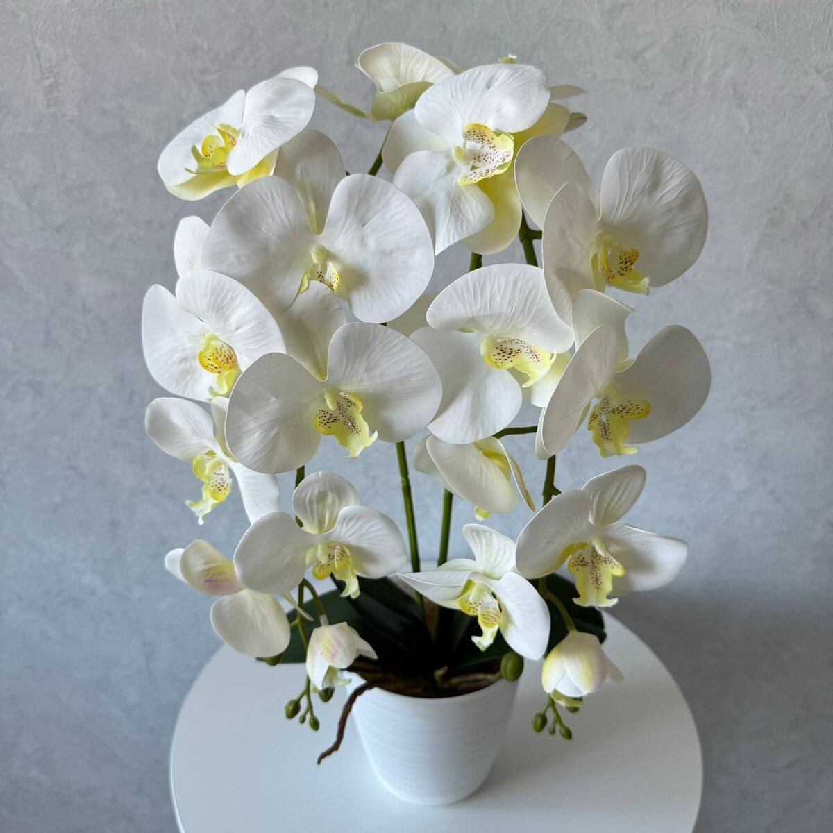 Королева цветов - изысканная орхидея фаленопсис. Орхидеи выполнены из мягкого латекса, реалистичны на внешний вид. Орхидеи - одни из самых популярных и прекрасных цветов. Они выглядят как настоящие растения, но не требуют ухода и поддержания определённых условий. Их можно использовать в разных местах, таких как дом, офис, рестораны, отели и другие помещения. Искусственные орхидеи - практически идеальны для составления интерьерных элементов спальни, кухни и даже ванной комнаты. Искусственные растения - отличный способ добавить зелень и живописный акцент в интерьер, не требуя усилий по уходу. Они являются популярным выбором для тех, кто ценит красоту и уют в своём доме, офисе. Искусственные декоративные латексные орхидеи очень неприхотливы в уходе, достаточно протереть пыль влажной тряпочкой. Выбор хорошего подарка – это непростая для каждого из нас и трудная задача. Декоративные орхидеи (именно силиконовые или латексные) будут оригинальным подарком. А так же они сохранят надолго в вашей