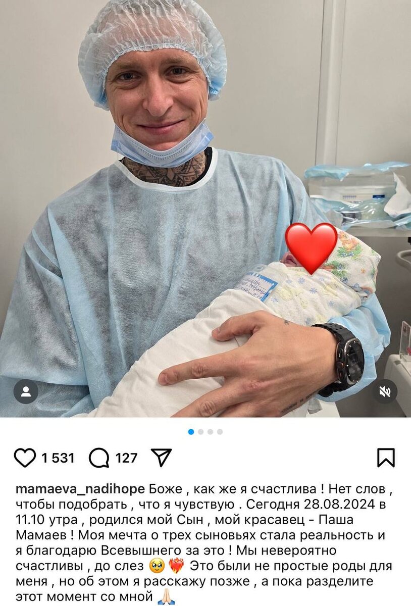 Ставший известным широкой аудитории не столько своими успехами на футбольном поле, сколько благодаря своей драке со стульями в "Кофемании" Павел Мамаев стал отцом в третий раз. Его супруга Надежда Санько/Мамаева родила Павлу второго сына. Назвали наследника в честь папы Павлом. Радостную новость сообщила сама молодая мама надежда со страниц своих соцсетей. У Павла и Надежды есть еще один общий сын. При этом у каждого есть еще и собственный ребенок от предыдущих отношений. У Надежды -старший сын, а у Павла - дочь Алиса. С мамой Алисы - Аланой Мамаевой Павел продолжает судиться до сих пор. На данный момент Павел Мамаев через суд требует с бывшей жены 10,2 млн рублей, за «неосновательное обогащение» во время брака.