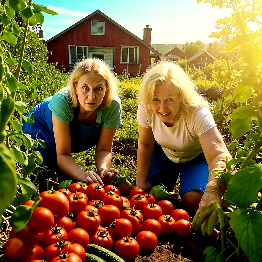 - А? - обе женщины резко приняли вертикальное положение, держа в руках сорванные помидоры.