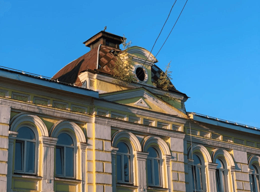 Здания в Кимрах находятся в разном состоянии: какие-то доживают свой век, какие-то — аккуратно восстановлены. Некоторые дома жители спасают своими силами, превращая их в франкенштейнов с пластиковыми конструкциями, кирпичными пристройками и страшными заборами.