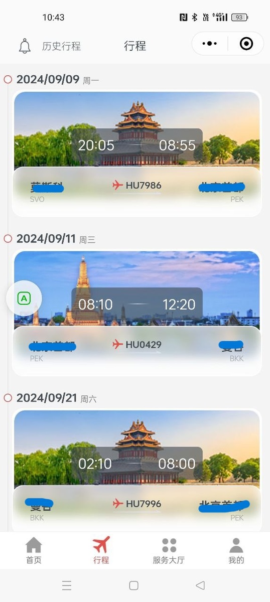 4. Пекин-Москва. В принципе выбор места доступен на все четыре перелета, но на направления Пекин-Бангкок и Бангкок-Пекин выбор только платный, так что тут уже на ваше усмотрение. А вот для Москва-Пекин и Пекин-Москва есть доступные бесплатные места. 1. Заходим в приложение, с главной страницы переходим кнопке самолетика снизу в список билетов. 2. Выбираем необходимый билет и нас перекидывает в его описание. 3. Далее нажиамем на картинку стула с телефоном, она выделена на картинке. 4. Нас перекидывает в уже другой список билетов. У необходимых билетов нажимаем на правую кнопку с красным текстом. 5. Здесь мы можем выбрать место. У меня на