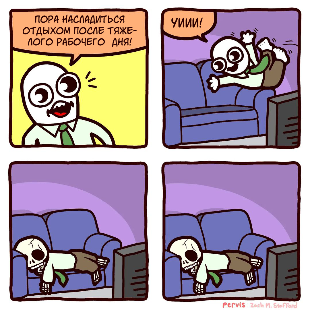Если в творческой сфере появляется какой-нибудь новый жанр, то рано или поздно появится и его переосмысление. На смену модерну приходит постмодерн, а после ироничных произведений появляются и постироничные. Среди веб-комиксов тоже есть свои жанры и один из них условно можно обозвать «жизой» - это когда художник находит что-нибудь забавное в своей повседневной жизни и рисует об этом комиксы. Герой же сегодняшней статьи решил пойти немного дальше и слегка переосмыслить жанр жизненных комиксов, добавив в них немного гротеска, абсурда и упростив все происходящее до максимума. В итоге получилось очень смешно! Надеюсь, что и вам эти комиксы понравятся. Pervis Comics (англ. «Комиксы о Первисе») - это серия юмористических веб-комиксов, созданная американским художником Заком Стаффордом (Zach Stafford). Данный автор рисует комиксы уже более десятка лет, его самый известный проект называется Extra Fabulous Comics («Экстра-невероятные комиксы») - это смешные комиксы на самые разные темы, главными