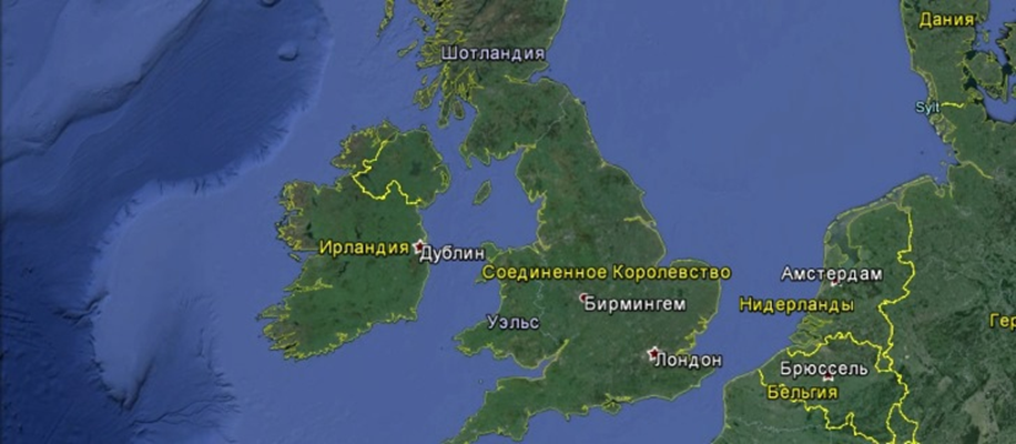 Дублинский, Дангвайр, Дромоленд, Блэкрок, Малахайд, Бларни, Росс, Скала Кэшел и др. Вместо рыбы, хотя это государство и островное, местные жители почему-то предпочитают мясо. Граница между Ирландией и Соединенным Королевством.