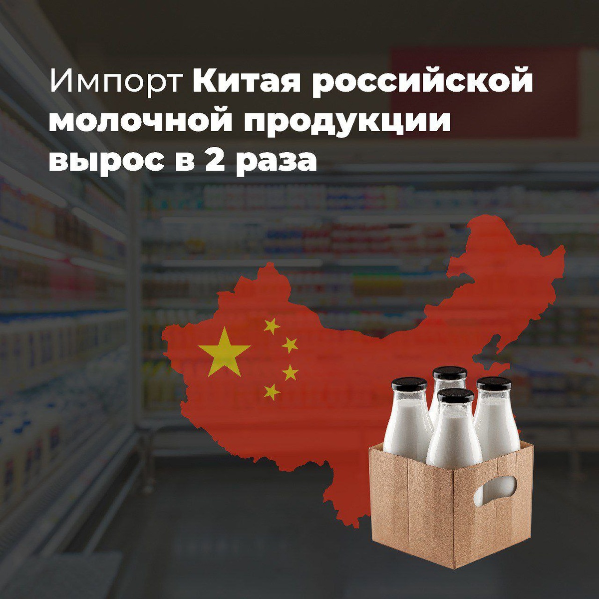 Согласно данным ГТУ КНР, за первые 7 месяцев 2024 года Китай импортировал молочной продукции из России на 9,4 млн долл. США. За аналогичный период прошлого года объем поставок составлял 4,9 млн долл. США, таким образом импорт вырос практически в 2 раза.