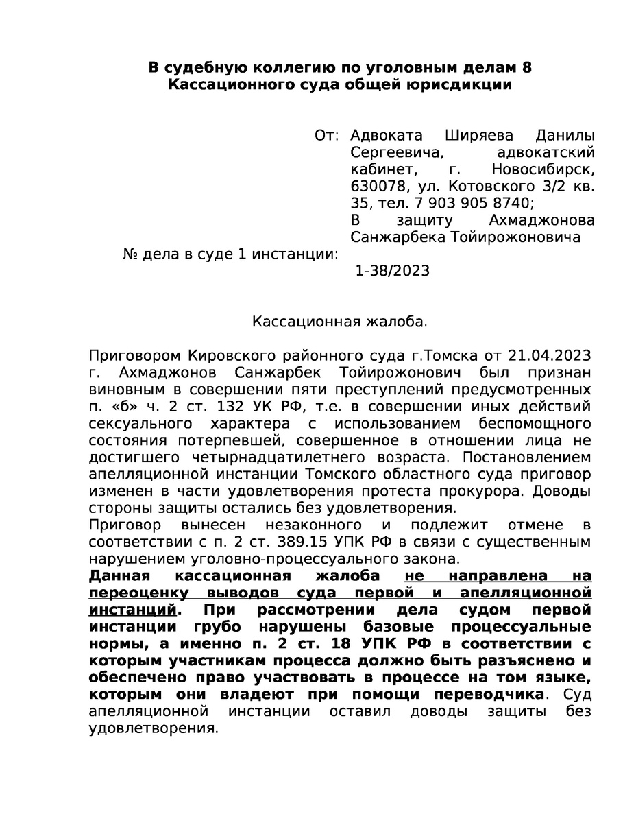 Выражаю свое несогласие с приговором Кировского районного суда г. Томска от 21.04.2023 г. #Ахмаджонову #Санжарбеку #Тойиржоновичу 12.08.1986 г.р. было назначено наказание в виде 17 лет 1 месяц лишения свободы, с отбыванием в колонии строгого режима.