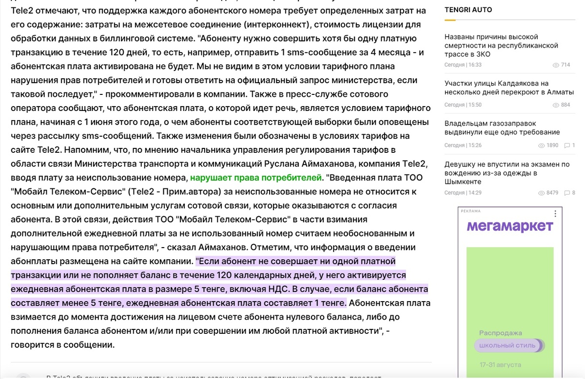 Всем привет. Итак прошёл почти год с тех пор как я сделал себе В Петропавловске карту Каспийбанка. Перед моим отпуском в ноябре я решил проверить как работает сим карта Теле 2 Казахстан. Включил телефон с этой симкой, который почти год лежал без дела. Связи нет. Я понадеялся на подключенную услугу Номер в сейфе. Оказалось этого мало. Я погуглил информацию и нашёл: Если абонент не совершает ни одной платной транзакции или не пополняет баланс в течение 120 календарных дней, у него активируется ежедневная абонентская плата в размере 5 тенге, включая НДС. В случае, если баланс абонента составляет менее 5 тенге, ежедневная абонентская плата составляет 1 тенге. Абонентская плата взимается до момента достижения на лицевом счете абонента нулевого баланса, либо до пополнения баланса абонентом и/или при совершении им любой платной активности. Вот ссылка на статью. Таким образом карта Каспийбанка без симки работать не будет. Вот такую оплошность я допустил. Теперь придётся опять ехать в Петропав