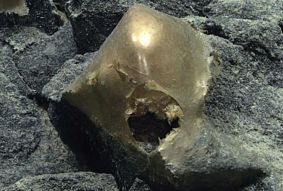 Американские исследователи нашли загадочный золотистый шар на дне океана у берегов Аляски, информирует Livescience. По данным издания, помог в этом подводный робот. Артефакт обнаружили в 2023 году в рамках экспедиции отдела изучения океана Национального управления океанических и атмосферных исследований США. Я не знаю, что с этим делать, — сказал один из ученых. Диаметр шара составляет около 10 сантиметров. Предмет был прикован к камню на глубине 3,3 тысячи метров. На одной из сторон шара исследователи заметили отверстие. Участники экспедиции пришли в недоумение от находки. Кто-то допустил, что это причудливые остатки коралла или губки. Другая гипотеза гласит, что исследователи нашли яйцо неизвестного животного. В последнем случае речь идет об очень крупном существе. Подтверждается это размерами яйца и отверстиями, которые мог сделать вылупившийся детеныш. Однако рядом не было других золотистых шаров. Животные, как правило, не откладывают только одно яйцо. Ранее французские ученые разг