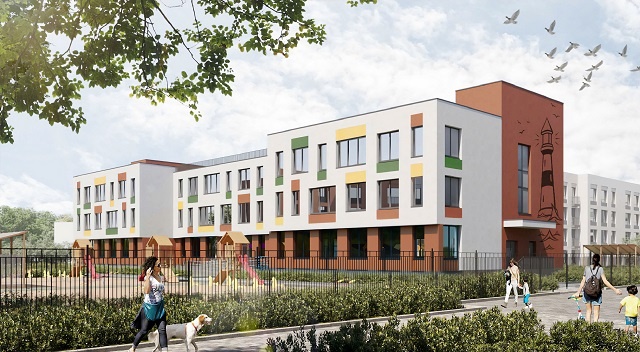 Проект садика на 150 мест получил положительное заключение экспертизы. Площадь будущего 2-3-этажного здания составит 4033 кв. м; детсад будет рассчитан на 9 групп. В садике предусмотрены музыкальный и физкультурный залы, помещение для кружков, а также - бассейн глубиной 0,6 м и площадью 21 кв. м. Фасад выполнят в традиционных петербургских цветах: белый, терракотовый и охра. Строить будет ГК «Алькор» (входит в группу «Главстрой») - девелопер проекта МЖК «Кронфорт. Центральный». В апреле компания «Алькор» получила разрешение на строительство малоэтажного квартала «Кронфорт. Центральный»: пять четырехэтажных корпусов на 1059 квартир (около 133 тысяч кв. м). Кроме детсада на 150 мест, здесь запланирован лицей для 550 учеников, с двумя бассейнами, его собираются ввести в эксплуатацию уже в этом году. ЖК «Кронфорт. Набережная», расположенный у залива - поменьше: три корпуса, 375 квартир. Гостиница и культурно-досуговый комплекс, а также марина на 239 судов запланированы в квартале «Кронфор