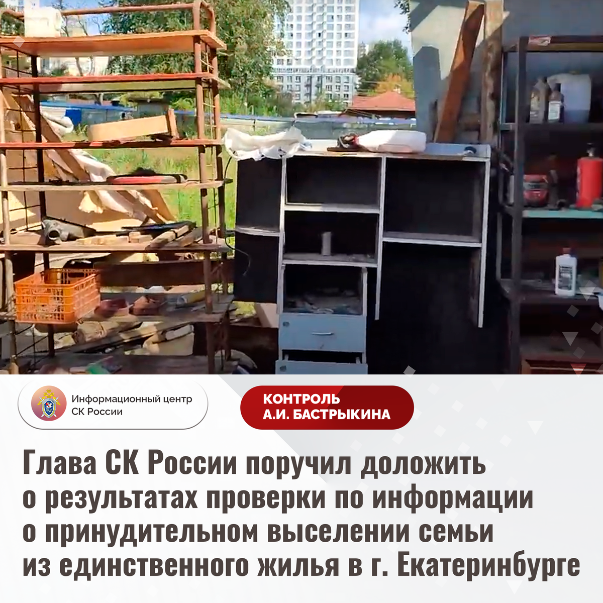 Глава СК России поручил доложить о результатах проверки по информации о принудительном выселении семьи из единственного жилья в г. Екатеринбурге