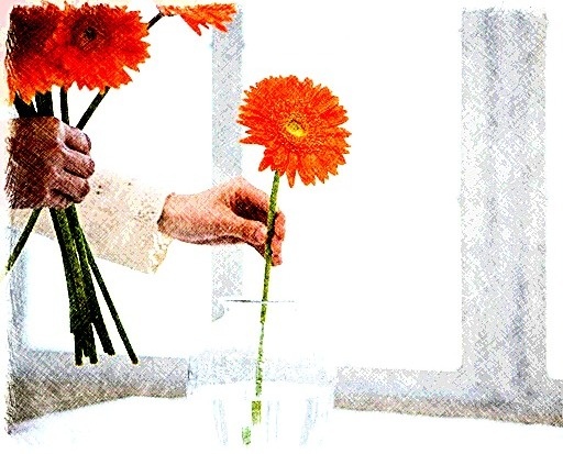 Кирилл тем временем действительно помогает мне с букетом: достает вазу из-за дивана, споласкивает, наполняет водой. Даже умудряется сам подрезать цветы.