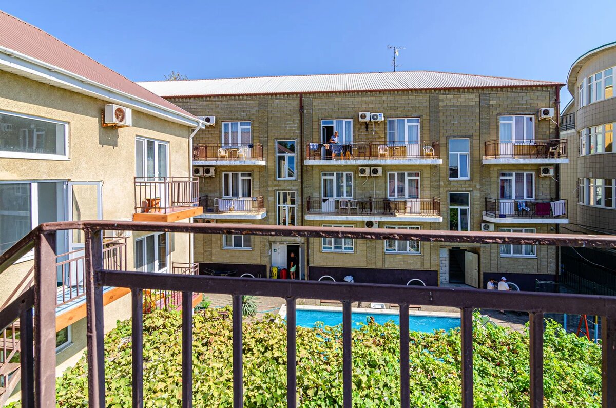 Есть бассейн на территории, но он небольшой и каркасный, плавают в нём в основном дети. Бассейн неподогреваемый, иногда в нём прохладно, т.к. часть дня он находится в тени.