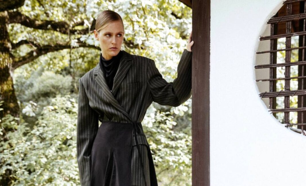 «За счет легкого полуприталенного силуэта и зауженной нижней части модели, пиджак смещает внимание на плечи, акцентируя хрупкость сильной героини», – говорится в описании.